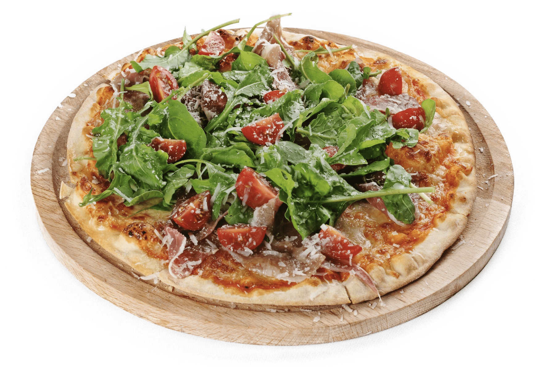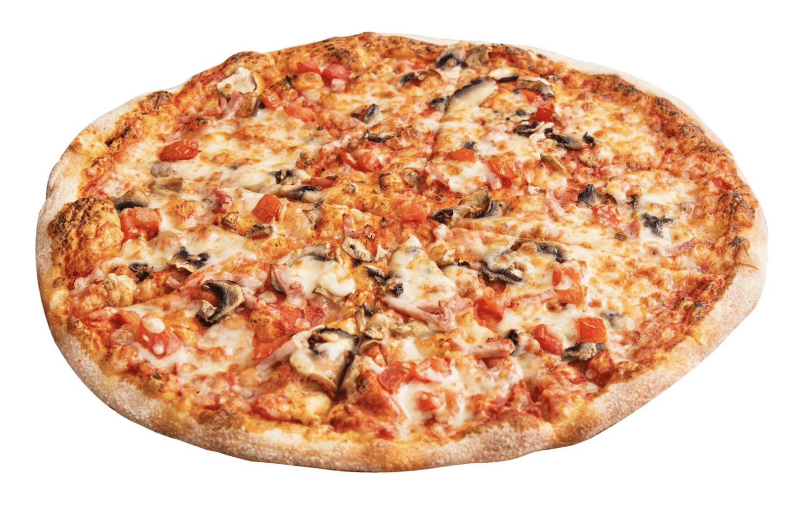 Tomato sauce, imported mozzarella, mushrooms, cooked ham, artichokes, green olives